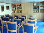 A deluxe cruise ship with large, comfortable communal areas including a reception lounge, lounge/bar, Jacuzzi, gym, library, sky bar and sundeck.